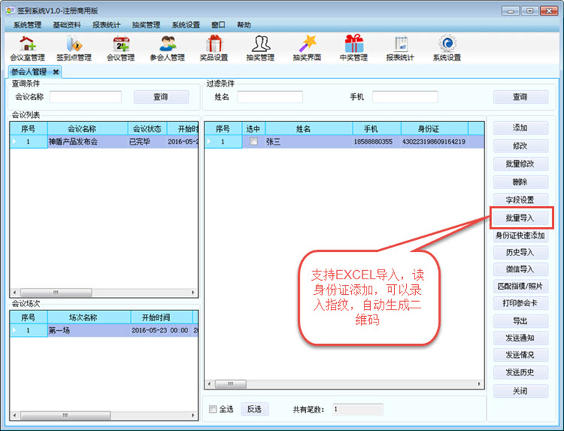 支持身份證簽到,二維碼簽到,ID,IC卡簽到,指紋簽到,查看簽到人員信息,未簽到人員信息,導(dǎo)出數(shù)據(jù),