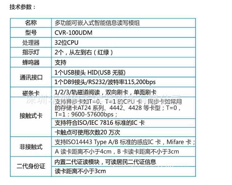 (*由于產(chǎn)品升級(jí)或其他原因,華視CVR-100UDM身份證閱讀器模組產(chǎn)品實(shí)際參數(shù)有可能變更,以實(shí)際產(chǎn)品為準(zhǔn)。本文中的所有陳述、信息和建議也不構(gòu)成任何明示或暗示的擔(dān)保)